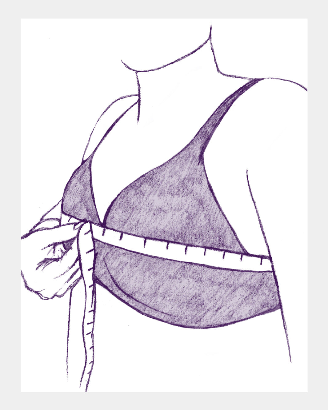 Put on your best fitting, non-padded bra. Look into the mirror and acknowledge that you look and feel GOOD. Get out your measuring tape - if you don’t have one, any kind of string and a ruler will also work.